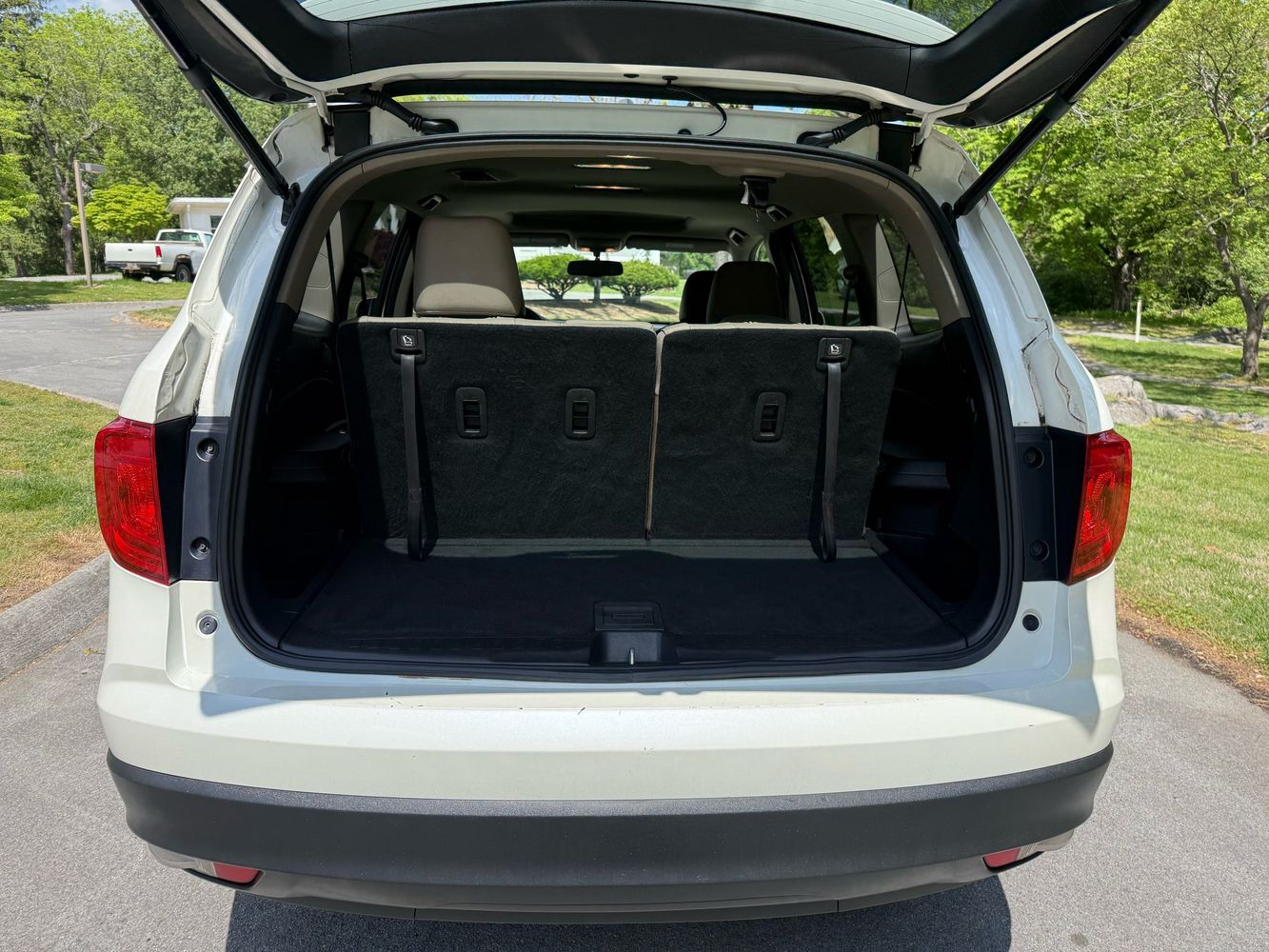 Third-row seatback upholstery: Carpet third-row seatback upholstery