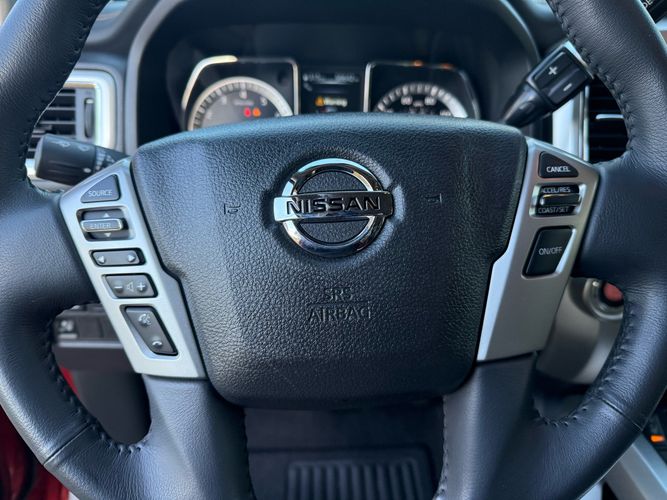 On the outside, the Titan shows off its bold personality with chrome bumpers and grille, 18-inch aluminum-alloy wheels, and a durable lockable tailgate. The bed rail tie-down system adds functionality and flexibility for work or play. Safety features include Vehicle Dynamic Control, Traction Control, and Nissan’s Advanced Airbag System, giving you peace of mind behind the wheel.