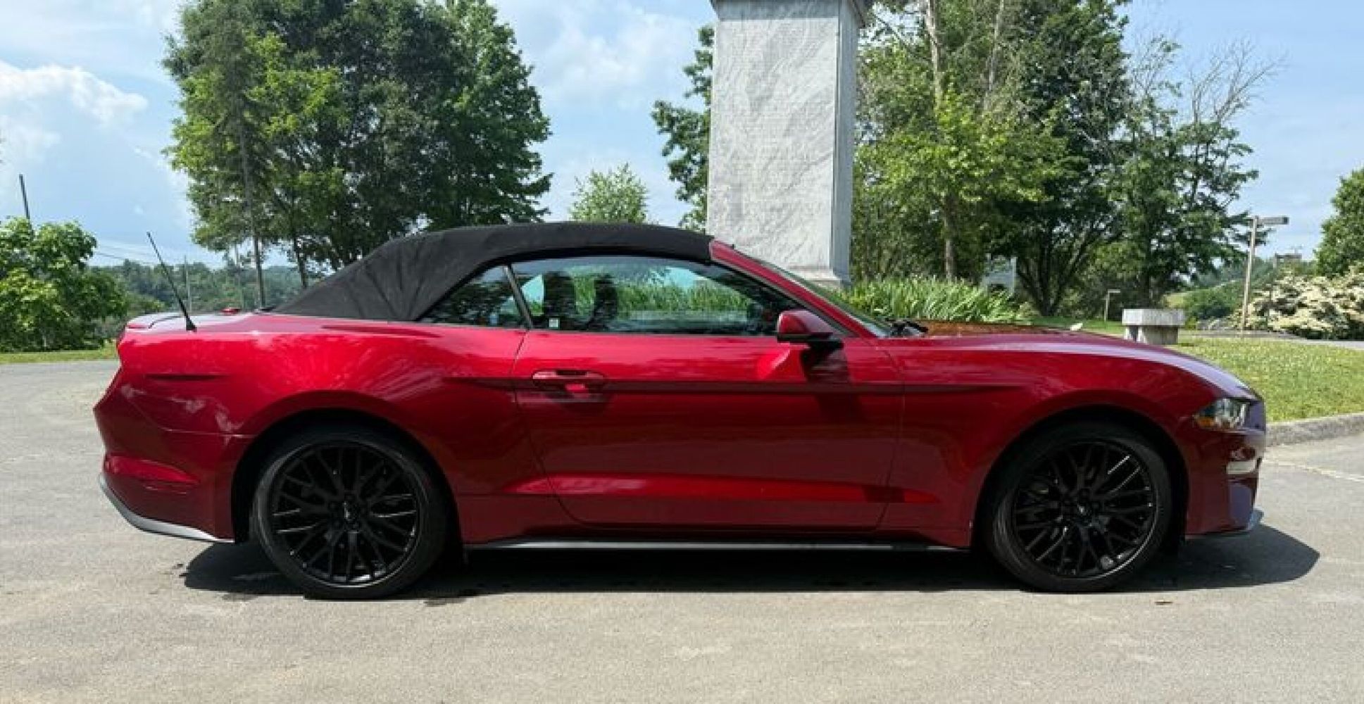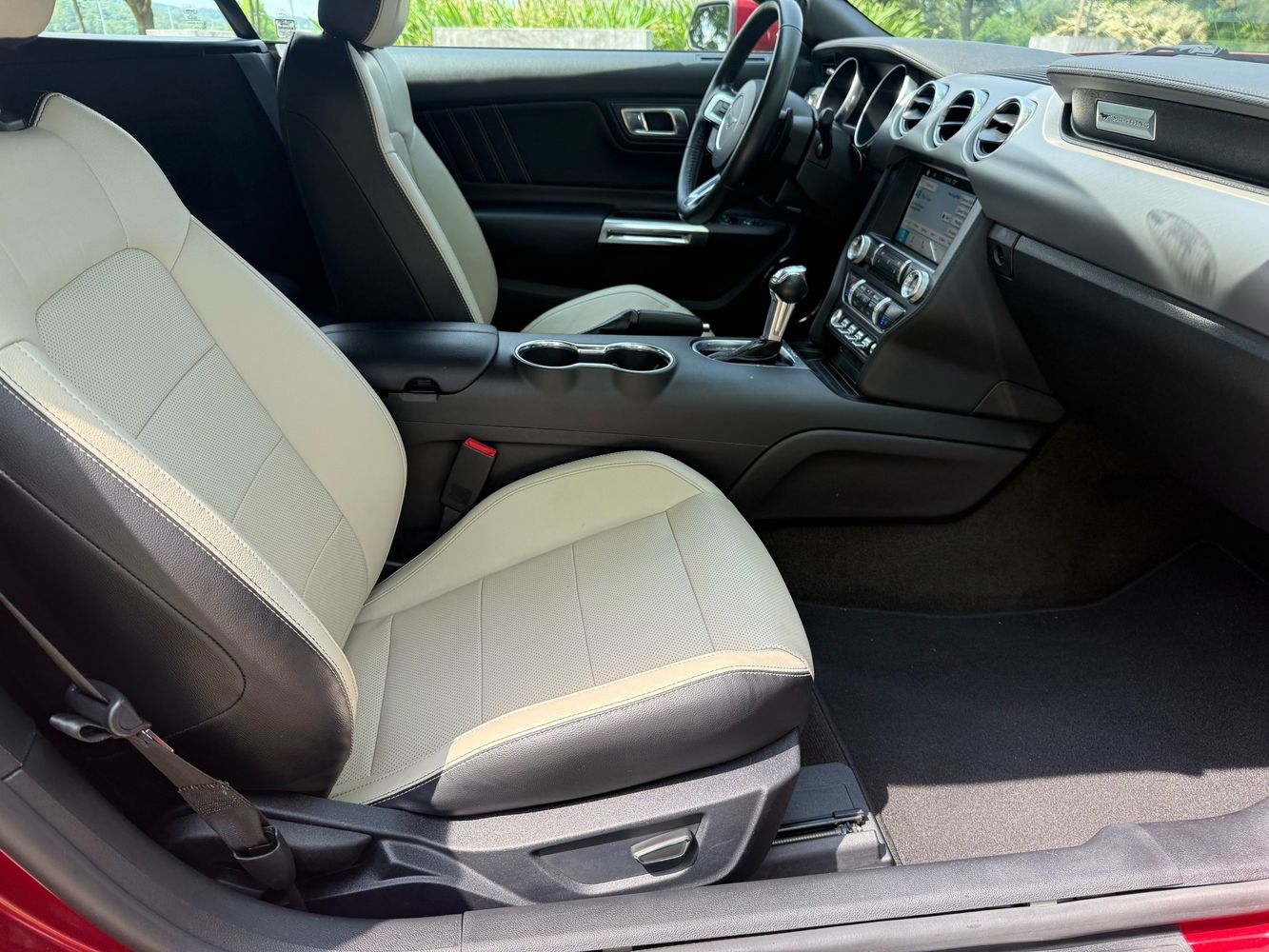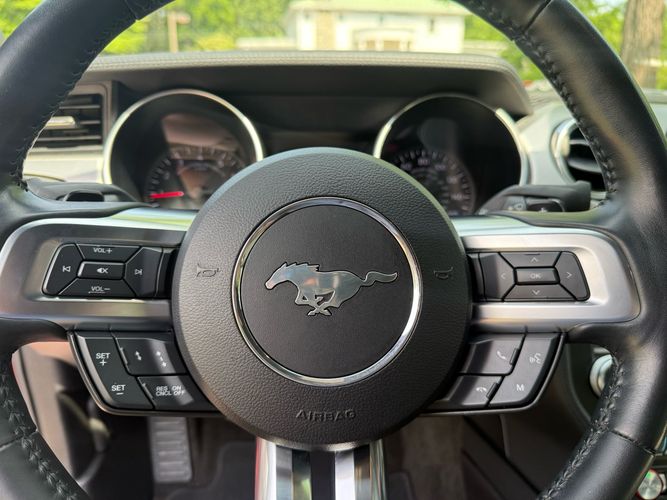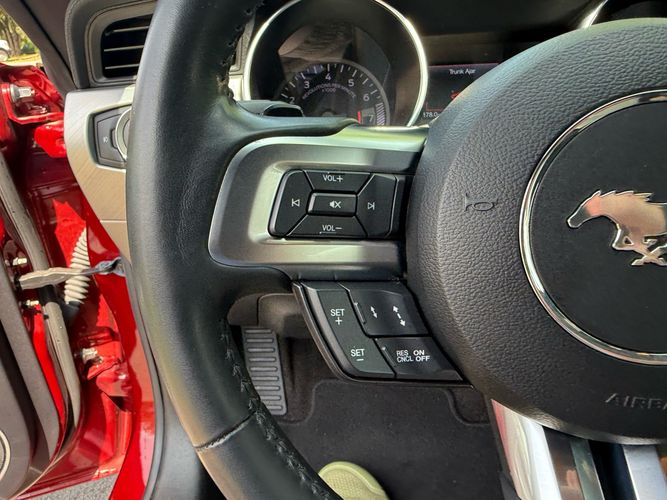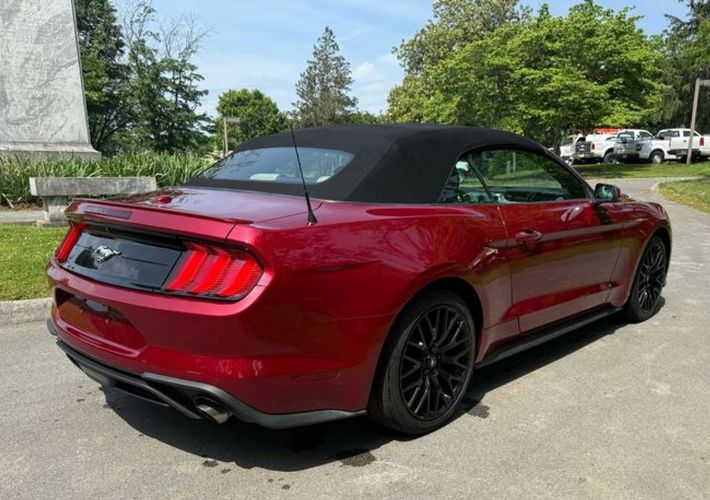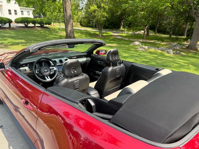 Experience the thrill of open-air driving with this stunning 2018 Ford Mustang EcoBoost Premium Convertible. Dressed in a captivating Ruby Red Metallic Tinted Clearcoat, this Mustang is not just about looks; it’s powered by a robust EcoBoost 2.3L Turbo I4 engine delivering an exhilarating 310 horsepower and 350 lb-ft of torque. The Black Accent Package adds a touch of sophistication with ebony black painted aluminum wheels and sleek black Pony badges, making every drive as stylish as it is powerful.