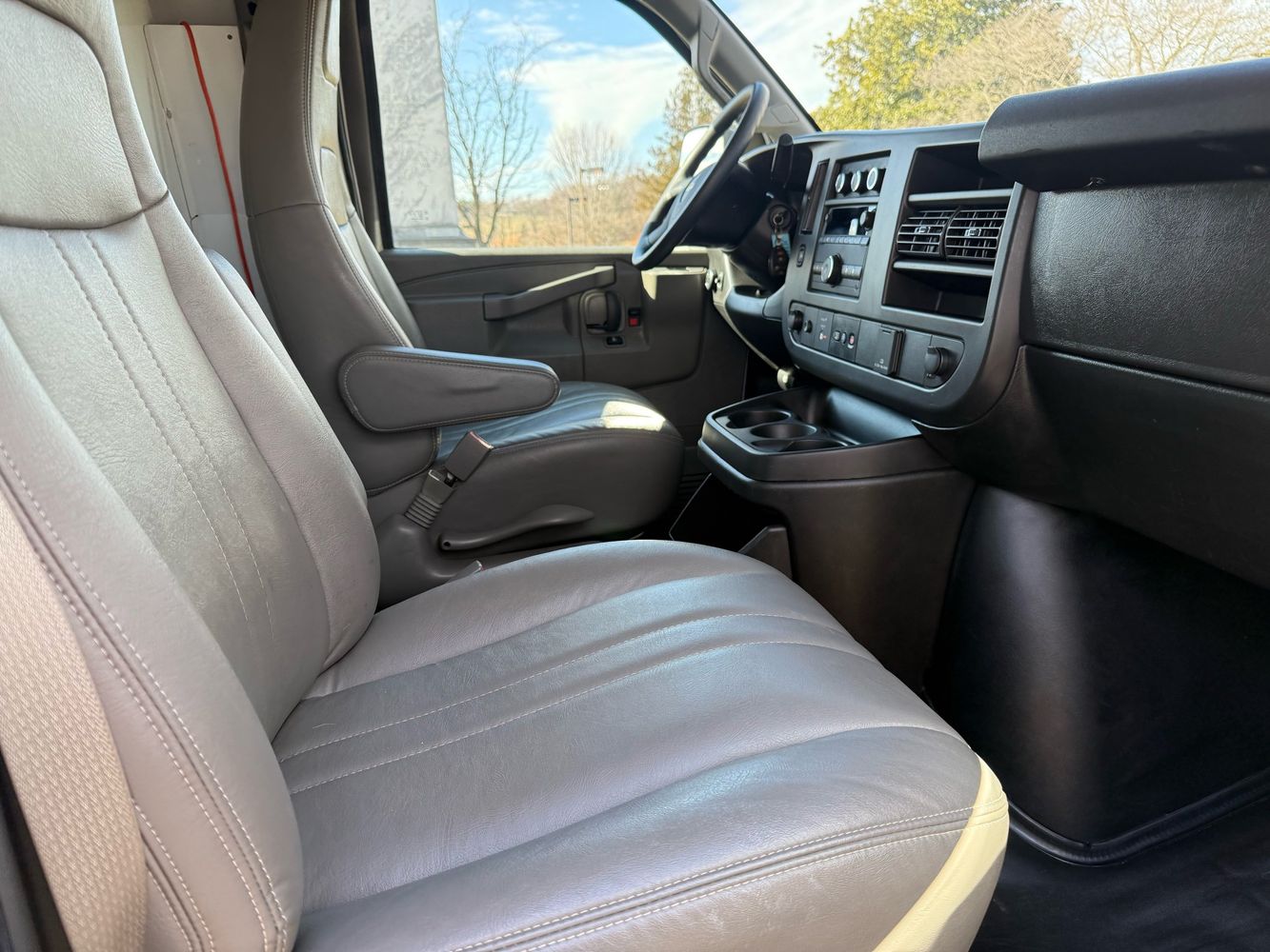 Inside, comfort meets functionality with vinyl seat trim and reclining front bucket seats equipped with armrests for long-haul convenience. Stay connected on the go with AM/FM Stereo featuring CD/MP3 capabilities and enjoy peace of mind thanks to advanced features like remote keyless entry and backup camera support. Don’t miss out on this versatile workhorse—visit us today to experience firsthand how the Chevrolet Express can drive your business forward!