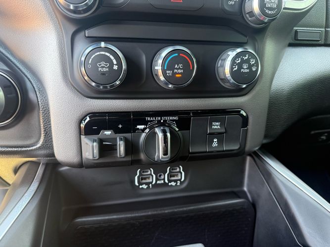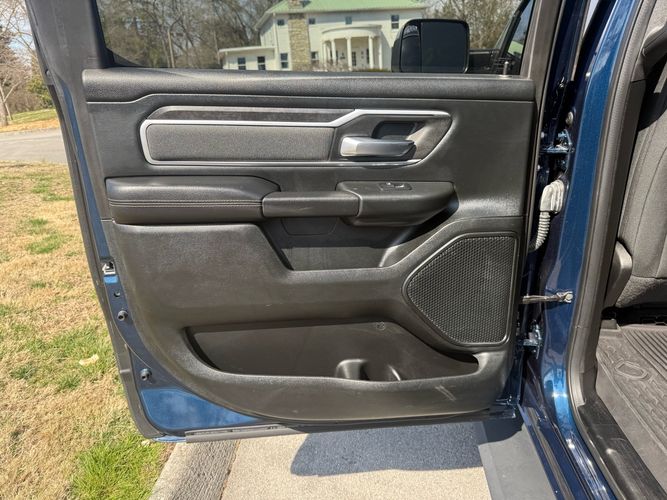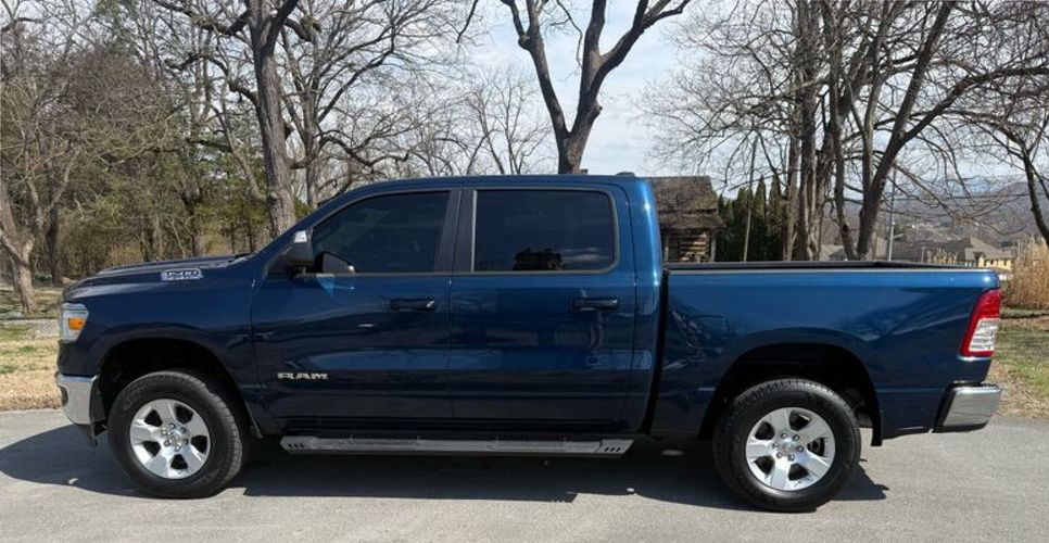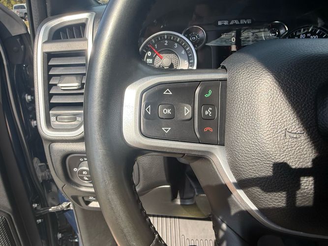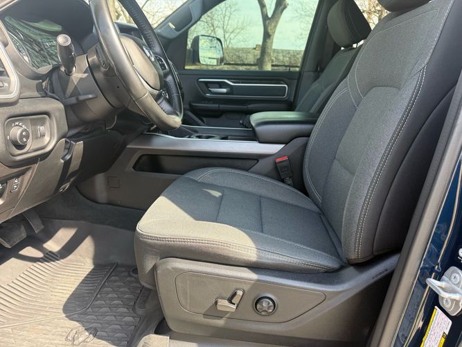 Experience the perfect blend of power and sophistication with the 2021 Ram 1500 Big Horn Crew Cab 4x4. Dressed in a striking Patriot Blue Pearlcoat, this truck commands attention on every road. Under its hood lies a robust HEMI 5.7L V8 engine delivering an impressive 395 horsepower and 410 lb-ft of torque, ensuring you have all the muscle needed for any adventure or task. With features like active noise cancellation and stainless steel dual exhausts, every drive is as smooth as it is powerful.