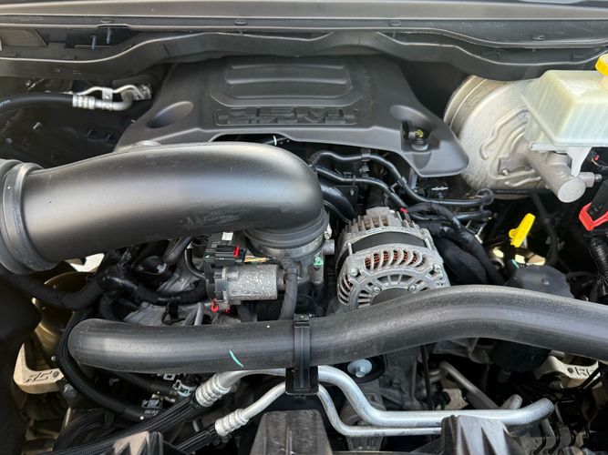 Engine Location: Front mounted engine. Fuel Type: Regular unleaded. Ignition: Spark ignition system. Variable intake manifold: Variable intake manifold. Engine Mounting direction: Longitudinal mounted engine. Engine block material: Iron engine block. Cylinder head material: Aluminum cylinder head. Alternator Type: Alternator. Powertrain type: ICE. Noise cancellation: Active noise cancellation. Tailpipe: Stainless steel quasi-dual exhaust with chrome tailpipe finisher. Engine: HEMI 5.7L V-8 variable valve control, regular unleaded, engine with cylinder deactivation and 395HP. Engine Short: HEMI 5.7L V-8. Engine Configuration: HEMI V8. Valves per cylinder: 2. Displacement liters: 5.7 L. Bore: 3.92". Stroke: 3.58". Compression ratio: 10.5. Horsepower: 395 HP @5600 RPM. Governed speed: 5800 RPM. Alternator Amps: 180 A. Torque: 410 lb.-ft. @ 3950 RPM. Engine Cylinders: 8. Displacement cubic inch: 345 cu.in.. Injection Type: Sequential MPI. Fuel economy (city/highway/combined): 15/21/17 MPG. Fuel economy city: 15 MPG. Fuel economy combined: 17 MPG. Performance quarter mile time: 14.54 seconds. Performance quarter mile speed: 91.7 mph. Fuel economy highway: 21 MPG. Performance acceleration: Estimated (0-60mph): 6.11 seconds.